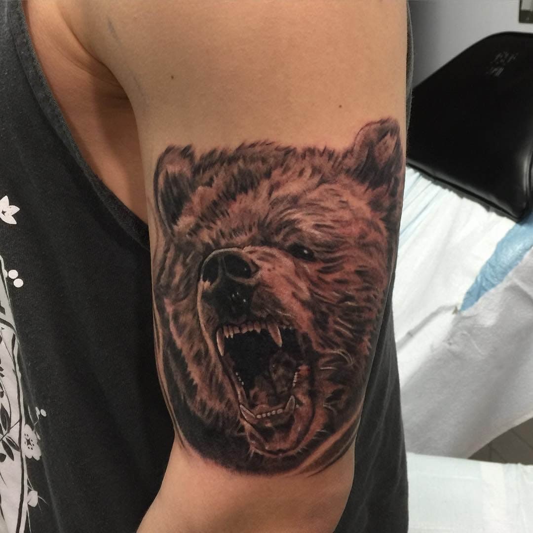 Angry Bear On Shoulder Tattoo By Led Coult Best Tattoo Ideas Gallery
