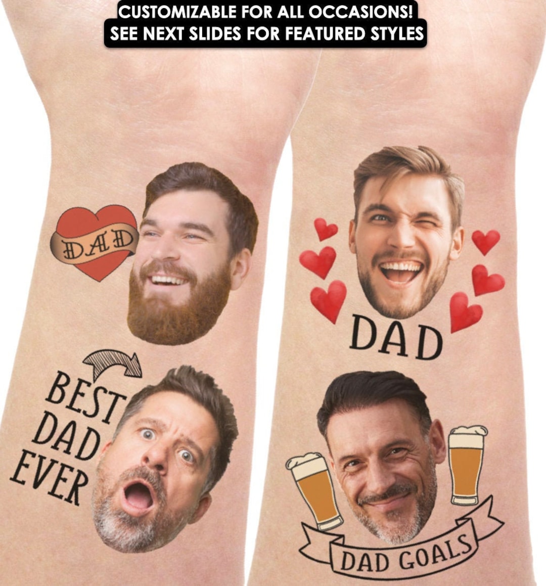 Custom Dad Tattoos Personalized With Fathers Face Gift Idea Etsy